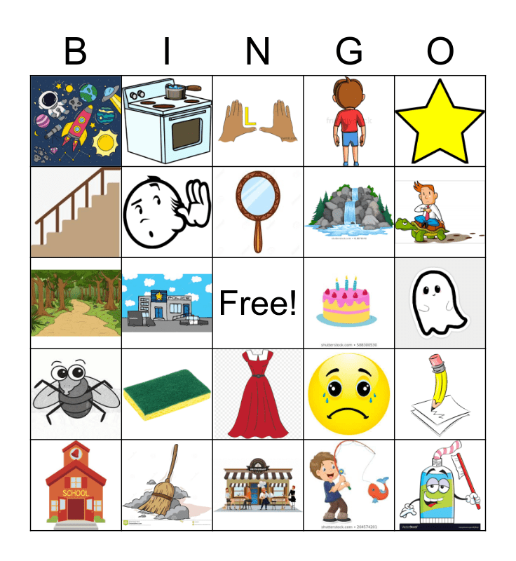 This bingo card has 24 images and a free space.