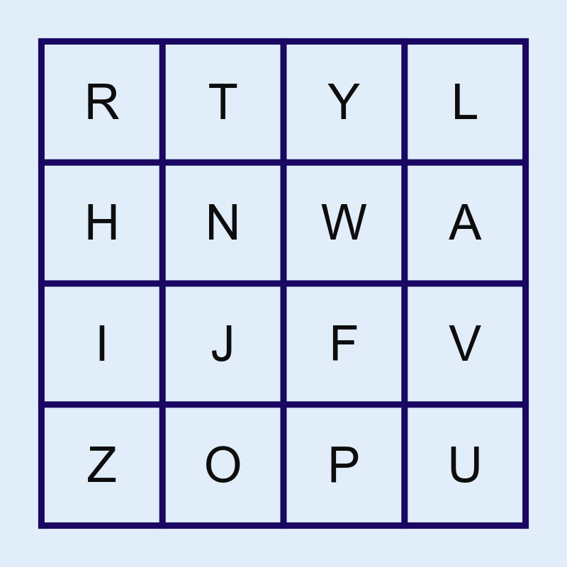 This bingo card has 27 words: Free!, Q, W, E, R, T, Y, U, I, O, P, A, S, D, F, G, H, J, K, L, Z, X, C, V, B, N and M.