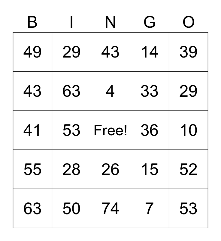 This bingo card has a free space and 150 words: 1, 16, 31, 46, 61, 2, 17, 32, 47, 62, 3, 18, 33, 48, 63, 4, 19, 34, 49, 64, 5, 20, 35, 50, 65, 6, 21, 36, 51, 66, 7, 22, 37, 52, 67, 8, 23, 38, 53, 68, 9, 24, 39, 54, 69, 10, 25, 40, 55, 70, 11, 26, 41, 56, 71, 12, 27, 42, 57, 72, 13, 28, 43, 58, 73, 14, 29, 44, 59, 74, 15, 30, 45, 60, 75, 1, 2, 3, 4, 5, 6, 7, 8, 9, 10, 11, 12, 13, 14, 15, 16, 17, 18, 19, 20, 21, 22, 23, 24, 25, 26, 27, 28, 29, 30, 31, 32, 33, 34, 35, 36, 37, 38, 39, 40, 41, 42, 43, 44, 45, 46, 47, 48, 49, 50, 51, 52, 53, 54, 55, 56, 57, 58, 59, 60, 61, 62, 63, 64, 65, 66, 67, 68, 69, 70, 71, 72, 73, 74 and 75.