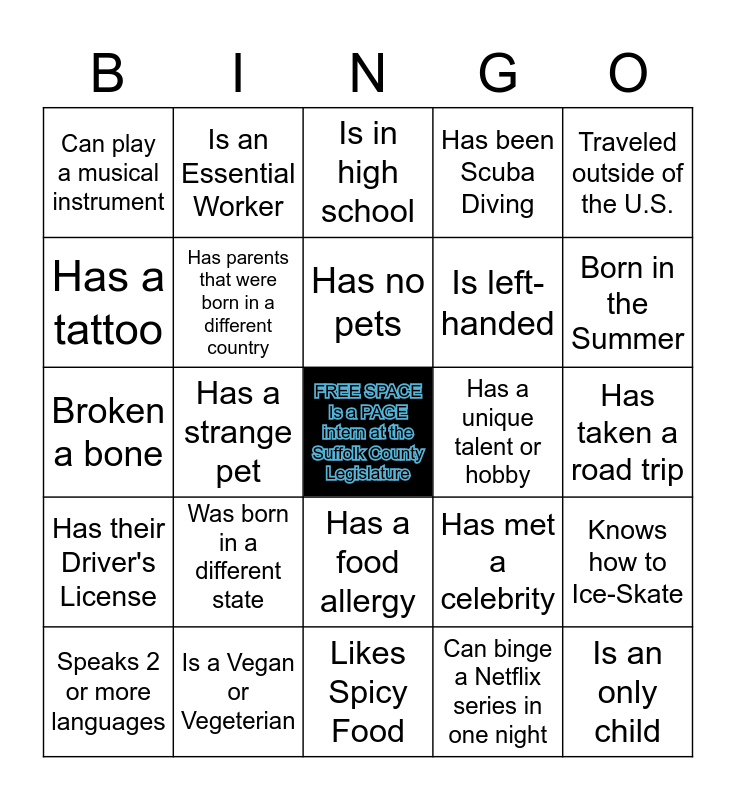 Legislature Student Day | PAGE Suffolk County Leg 2021 | Suffolk County Legislature | Shine | Find Someone Who...