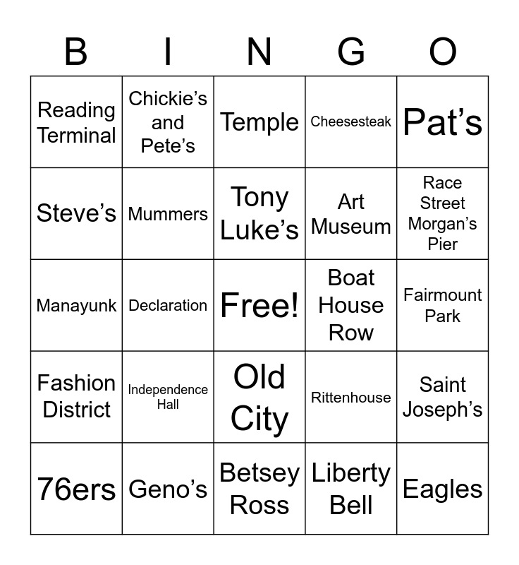 Philadelphia Family Bingo | A Taste of Philly | Les lieux | in der Stadt | ESSC PLACES