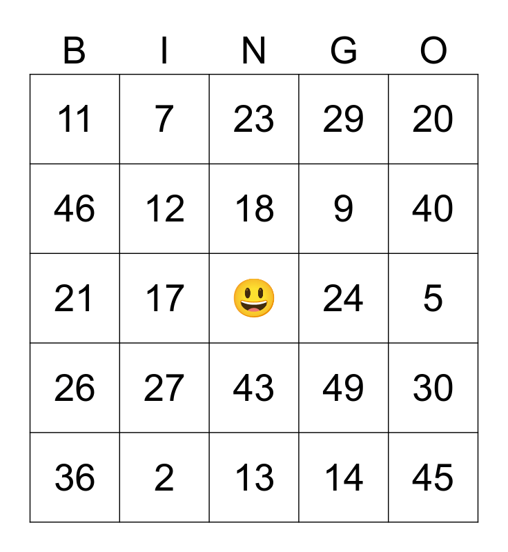 This bingo card has a free space and 50 words: 1, 2, 3, 4, 5, 6, 7, 8, 9, 10, 11, 12, 13, 14, 15, 16, 17, 18, 19, 20, 21, 22, 23, 24, 25, 26, 27, 28, 29, 30, 31, 32, 33, 34, 35, 36, 37, 38, 39, 40, 41, 42, 43, 44, 45, 46, 47, 48, 49 and 50.