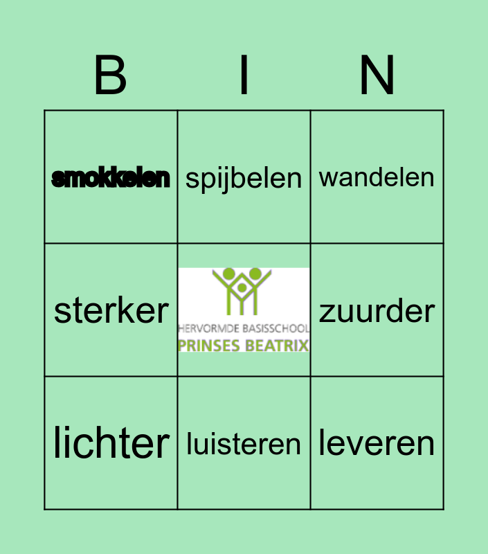 This bingo card has a free space and 17 words: kwispelen, rekenen, wandelen, smokkelen, berekenen, sterker, schilderen, lichter, luisteren, zuurder, hagelen, kibbelen, leveren, spijbelen, bladeren, regenen and stamelen.