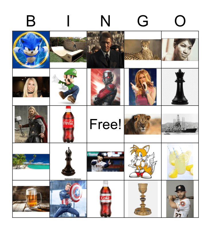 This bingo card has 25 images and a free space.