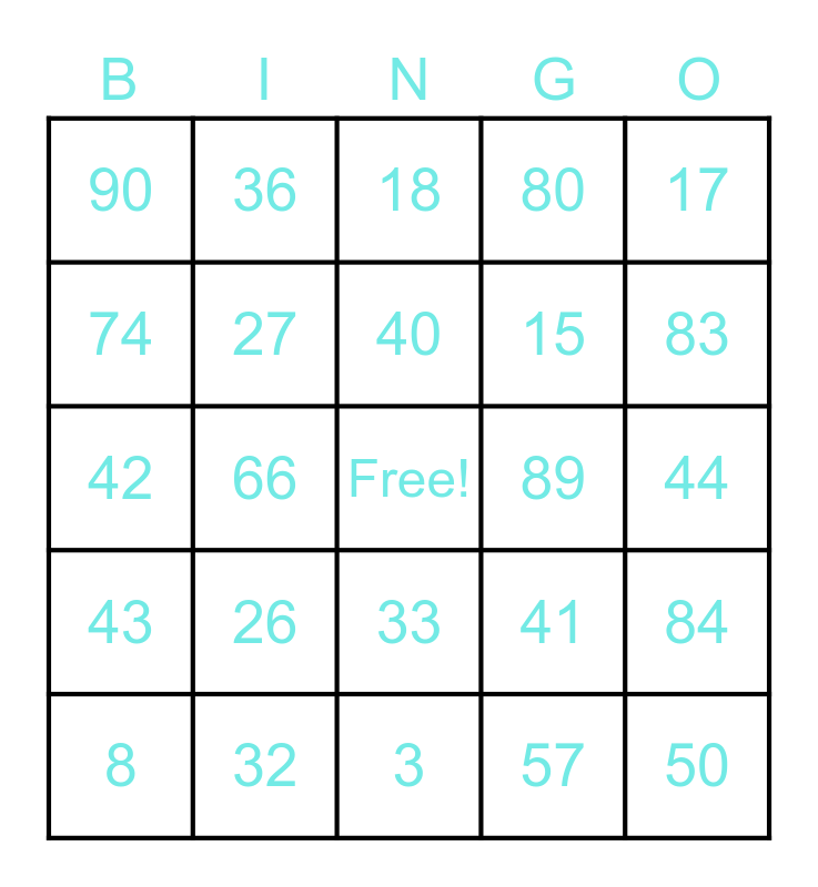 This bingo card has a free space and 94 words: 1, 2, 3, 4, 5, 6, 7, 8, 9, 10, 11, 12, 14, 15, 16, 17, 18, 19, 20, 21, 22, 23, 24, 25, 26, 27, 28, 29, 30, 31, 32, 33, 34, 35, 36, 37, 38, 39, 40, 41, 42, 43, 44, 45, 50, 51, 52, 53, 54, 55, 56, 57, 58, 59, 60, 61, 62, 63, 64, 65, 66, 67, 68, 69, 70, 71, 72, 73, 74, 75, 76, 77, 78, 79, 80, 81, 82, 83, 84, 85, 86, 87, 88, 89, 90, 91, 92, 93, 94, 95, 96, 97, 98 and 99.