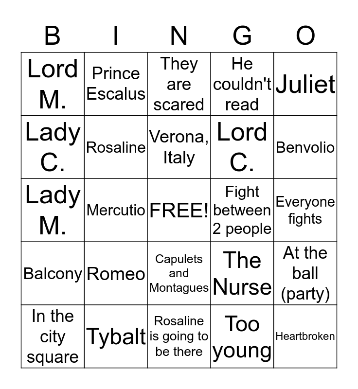 Romeo and Juliet | Romeo & Juliet BINGO! | Romeo and Juliet Characters | Romeo and Juliet | Romeo & Juliet Act 1 Bingo