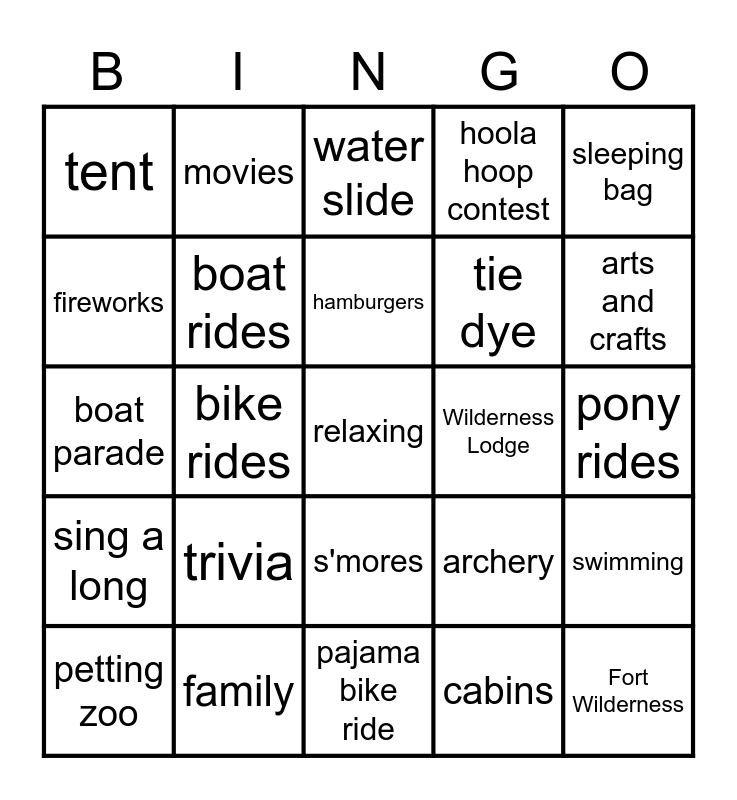 Fort Wilderness Bingo | Summer Bingo | SUMMER TIME | SUMMERTIME | Summer