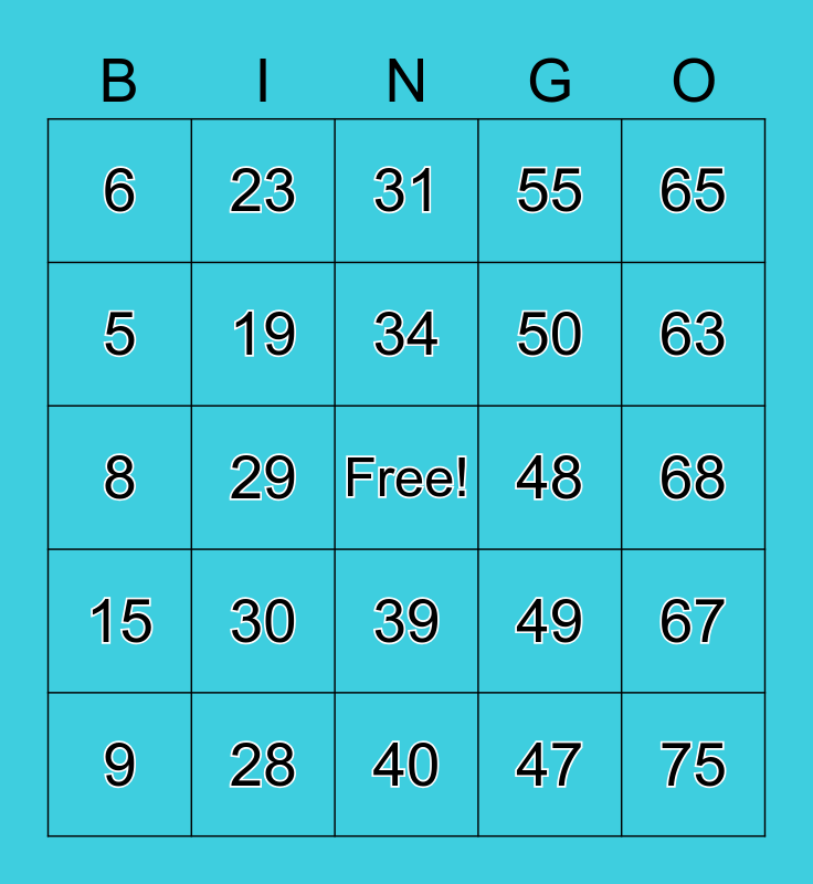 This bingo card has a free space and 75 words: 1, 16, 31, 46, 61, 2, 17, 32, 47, 62, 3, 18, 48, 63, 4, 19, 33, 49, 64, 5, 20, 34, 50, 65, 6, 21, 35, 51, 66, 7, 22, 36, 52, 67, 8, 23, 37, 53, 68, 9, 24, 38, 54, 69, 10, 25, 39, 55, 70, 11, 26, 40, 56, 71, 12, 27, 41, 57, 72, 13, 28, 42, 58, 73, 14, 29, 43, 59, 74, 15, 30, 44, 60, 75 and 45.