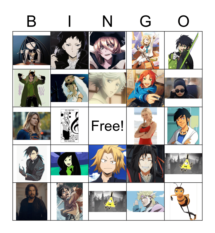 This bingo card has 24 images and a free space.