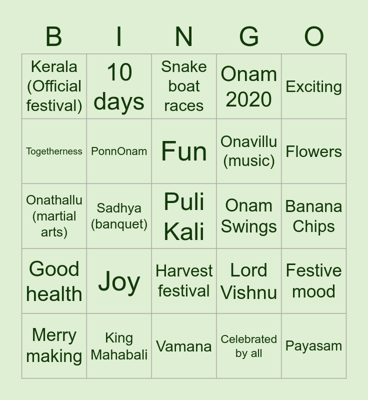 Onam 2020 | holiday bingo | Onam | ONAM BINGO | Onam 2023