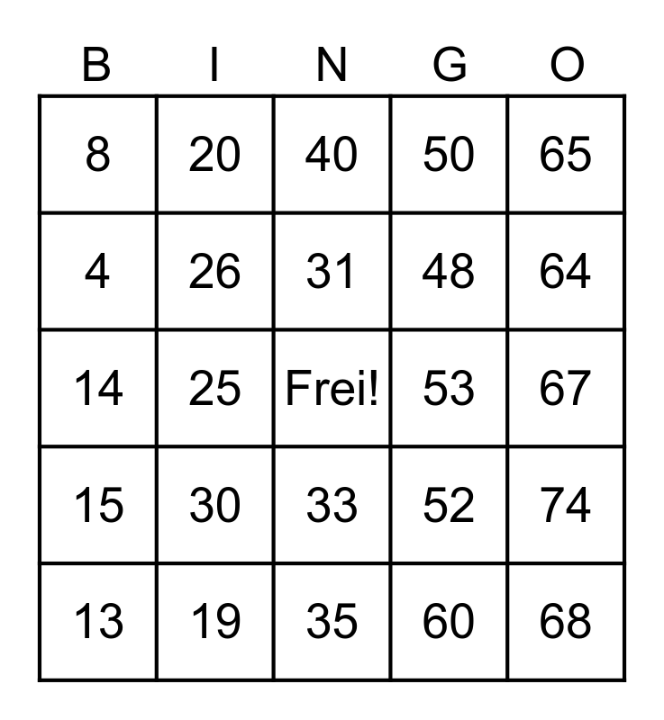 This bingo card has a free space and 75 words: 1, 16, 31, 46, 61, 2, 17, 32, 47, 62, 3, 18, 33, 48, 63, 4, 19, 34, 49, 64, 5, 20, 35, 50, 65, 6, 21, 36, 51, 66, 7, 22, 37, 52, 67, 8, 23, 38, 53, 68, 9, 24, 39, 54, 69, 10, 25, 40, 55, 70, 11, 26, 41, 56, 71, 12, 27, 42, 57, 72, 13, 28, 43, 58, 73, 14, 29, 44, 59, 74, 15, 30, 45, 60 and 75.