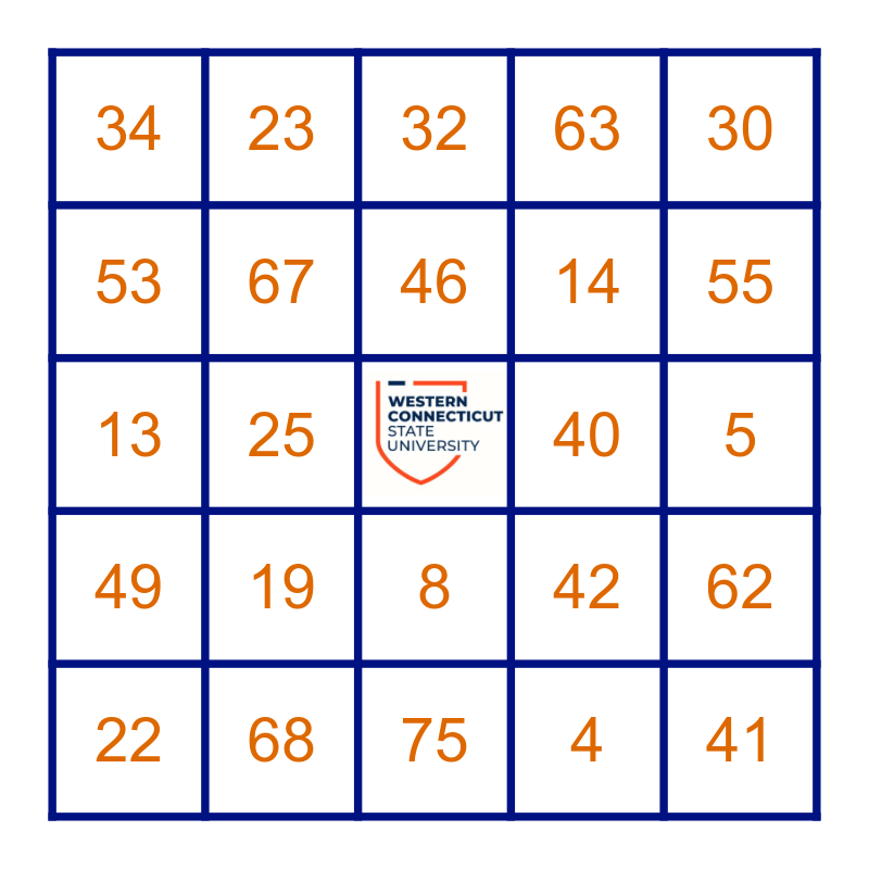 This bingo card has a free space and 24 words: 19, 68, 46, 22, 30, 34, 53, 23, 40, 8, 14, 13, 42, 62, 67, 4, 5, 32, 55, 25, 41, 49, 63 and 75.