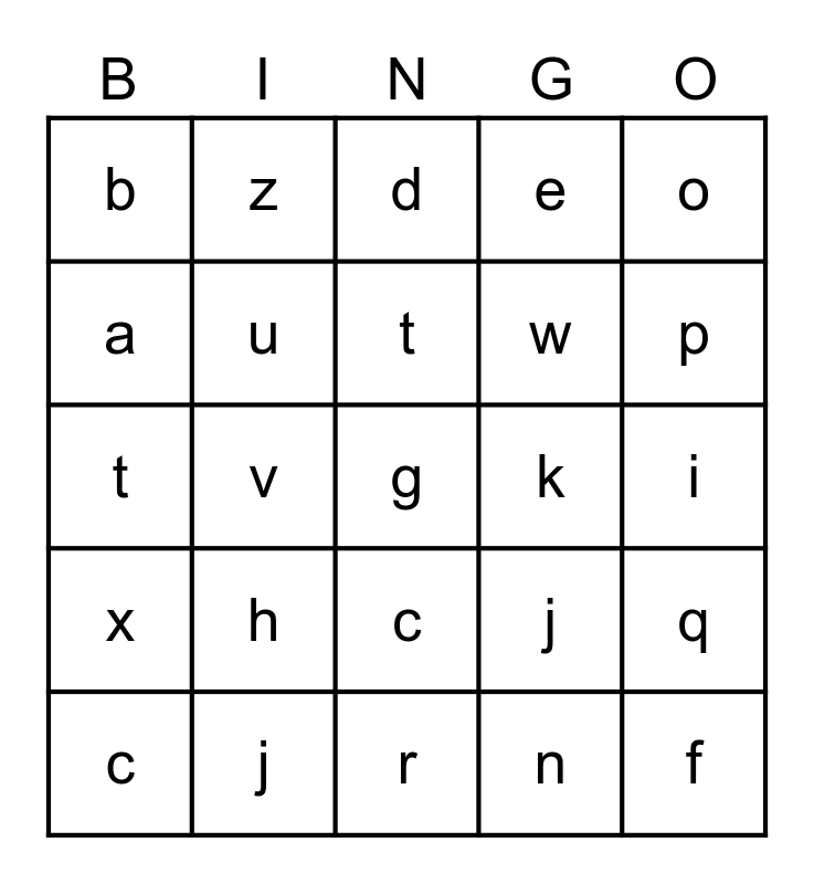 This bingo card has 29 words: c, m, v, f, b, d, u, h, k, j, i, g, r, n, p, s, c, x, o, t, j, l, w, a, e, z, q, t and y.