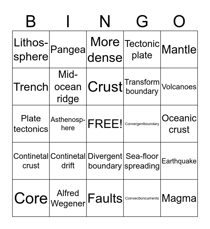 Plate Tectonics | Plate Tectonics Bingo | Plate Tectonics Bingo | Plate Tectonics BINGO | Plate Tectonics Bingo