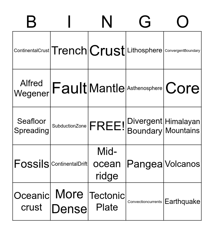 Tectonic Plate Bingo | Chapter 10 Review | Layers of Earth | Continental Drift | Continental Drift