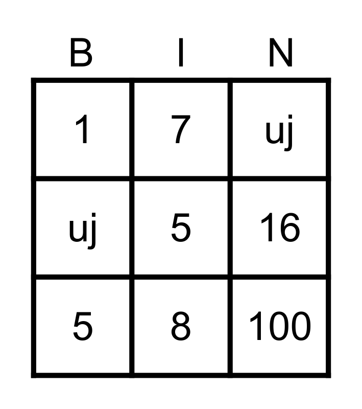 This bingo card has a free space and 23 words: 2, 44, 8, 74, 100, 1, 16, 7, mkl, uu, Free!, k, u, yy, 34wy, h, uj, hh, 5, y5, uj, mj and ''k".