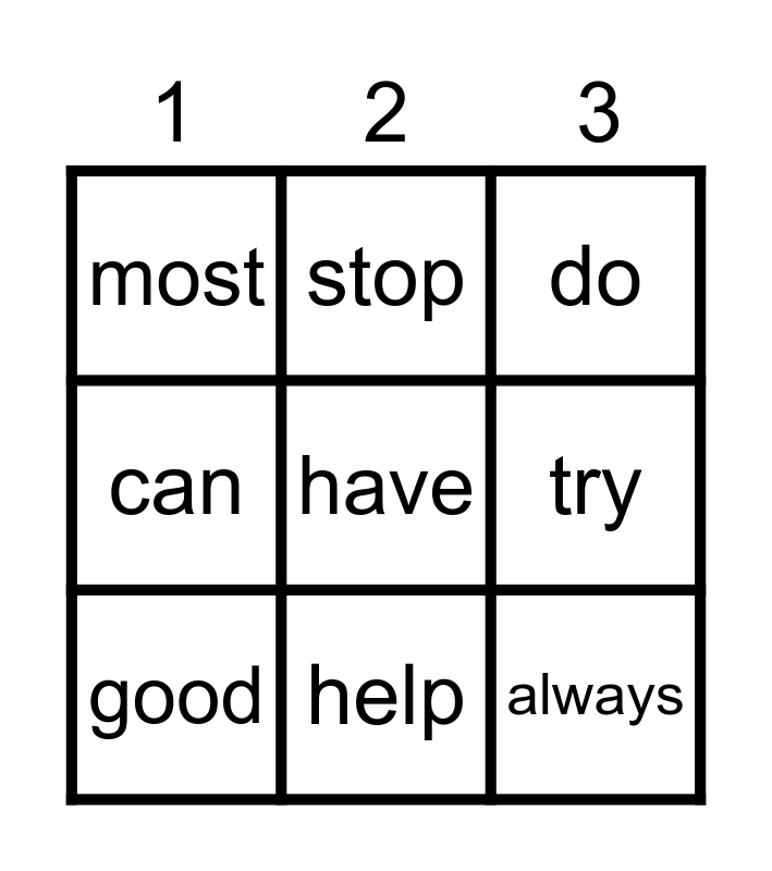 This bingo card has a free space and 17 words: is, keep, do, most, that, can, school, good, help, try, says, hand, always, stop, see, your and people.