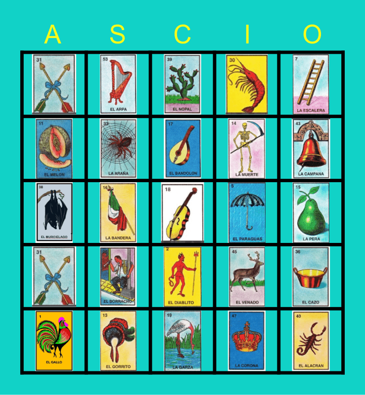 This bingo card has 54 images.