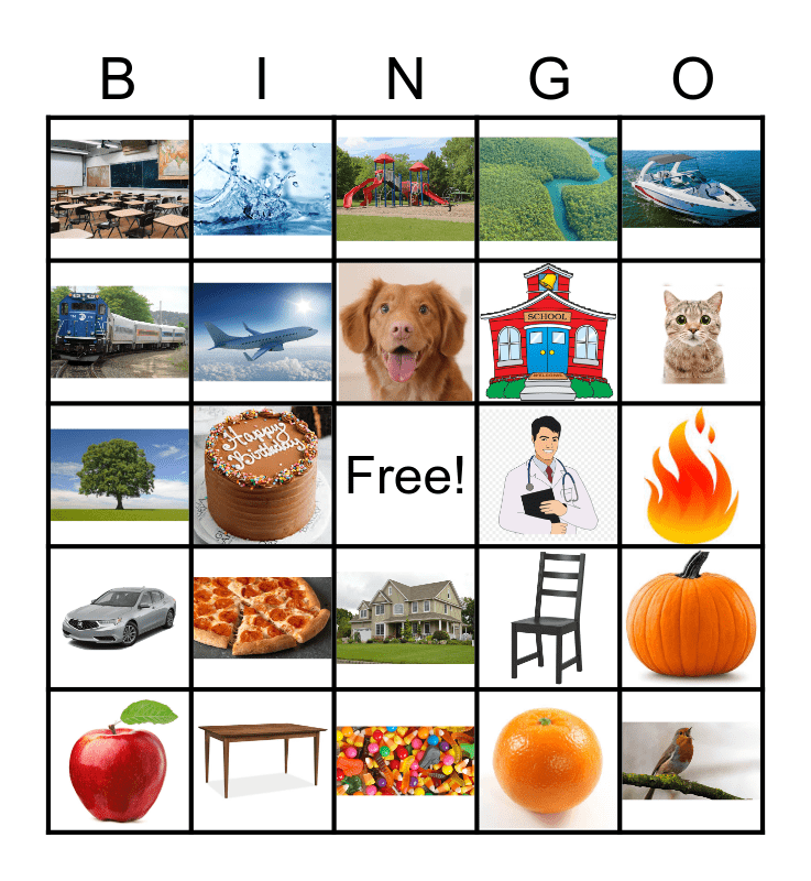 This bingo card has 24 images and a free space.