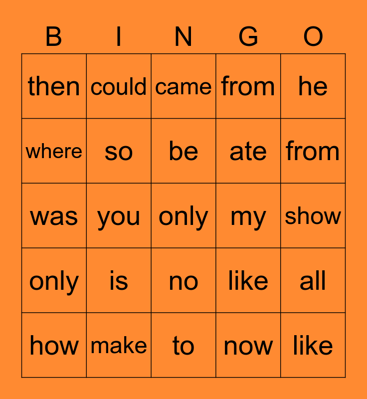 ⚠ This card has duplicate items: then (4), what (4), like (4), off (4), we (4), be (4), walk (4), how (4), this (4), here (4), so (4), came (4), go (4), and (4), my (4), ate (4), no (4), only (4), look (4), you (4), now (4), the (4), is (4), when (4), all (4), your (2), he (2), me (2), she (2), will (2), have (2), too (2), said (2), down (2), very (2), they (2), help (2), from (2), good (2), on (2), was (2), a (2), just (2), one (2), every (2), but (2), into (2), there (2), could (2), make (2)