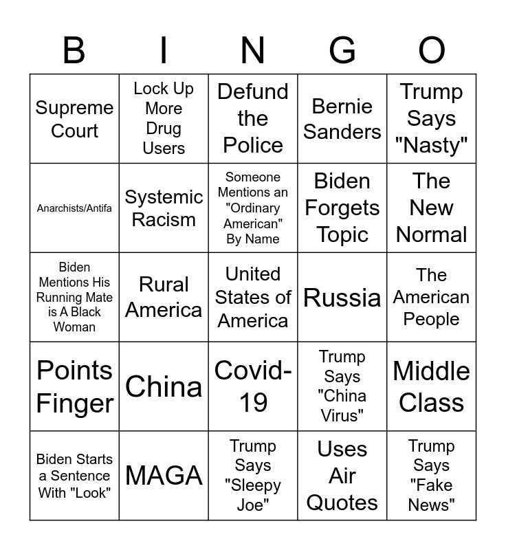 Debate Bingo | Debate Bingo | 1st 2020 Presidential Debate | Debate BINGO | 09/2020 Debate