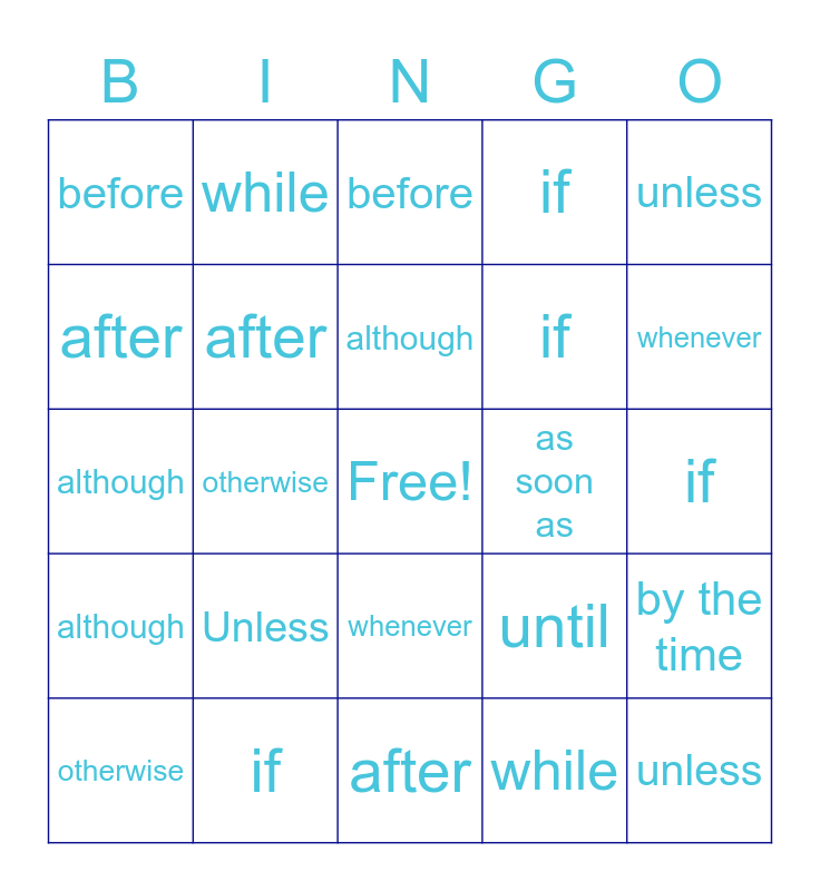⚠ This card has duplicate items: if (4), although (2), otherwise (2), unless (2), before (2), after (3), while (2), whenever (2)