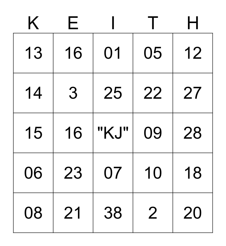 This bingo card has a free space and 24 words: 23, 21, 25, 08, 12, 13, 14, 16, 09, 07, 22, 15, 10, 18, 3, 2, 28, 01, 27, 16, 20, 06, 05 and 38.