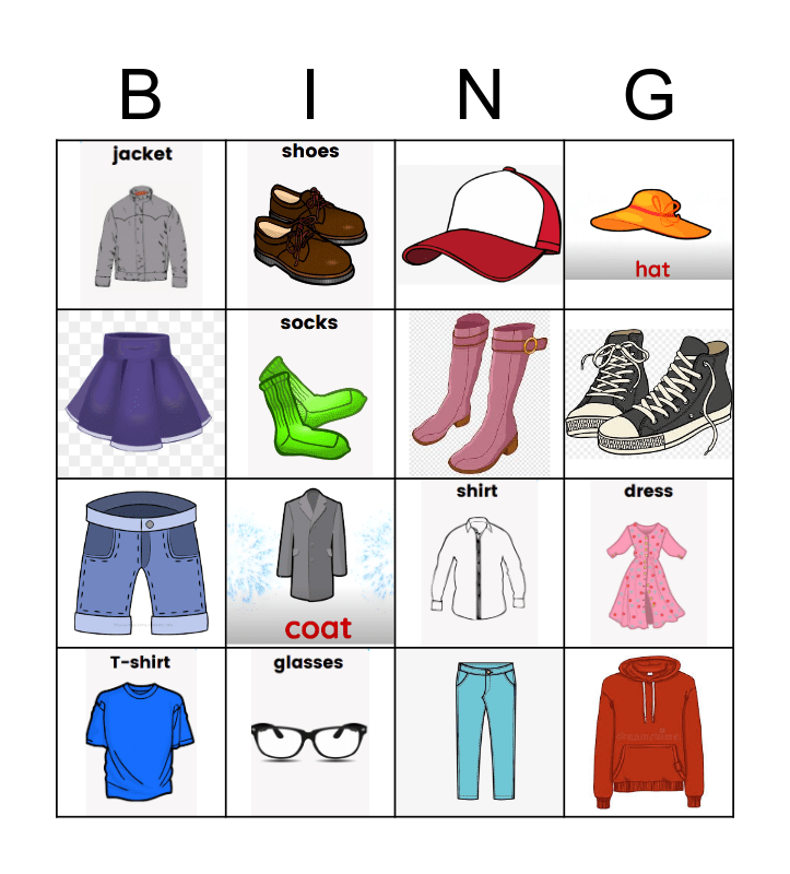 CLOTHES Bingo Card