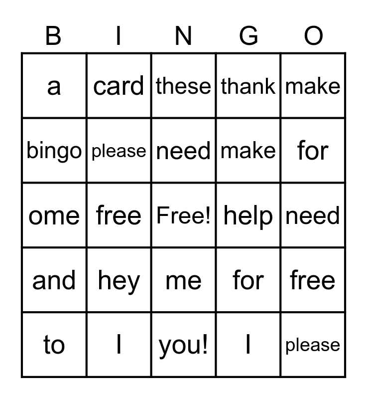 ⚠ This card has duplicate items: I (2), need (2), make (2), free (2), please (2)