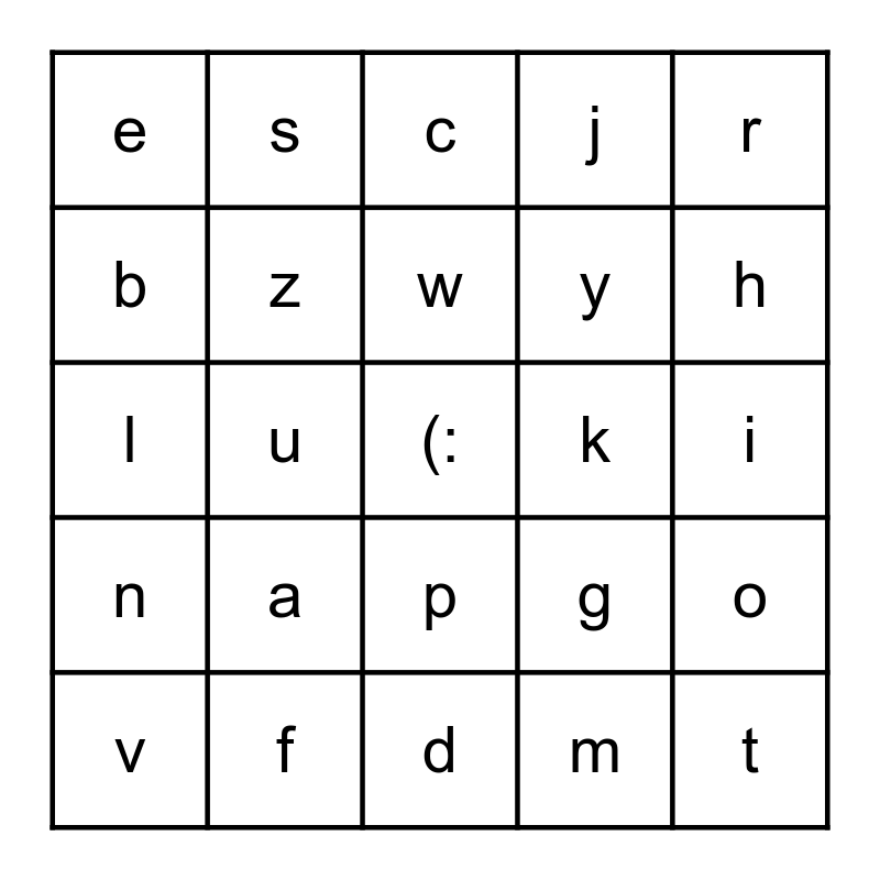 This bingo card has a free space and 24 words: a, f, w, v, r, e, b, s, k, p, y, l, g, o, z, m, i, c, h, u, t, n, j and d.
