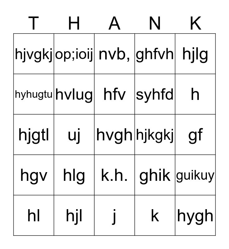 This bingo card has 25 words: hlg, j, hfv, hl, hjlg, hjvgkj, hyhugtu, op;ioij, hjkgkj, k.h., syhfd, hjgtl, ghik, guikuy, hvlug, hygh, gf, nvb,, h, uj, hvgh, hjl, hgv, ghfvh and k.