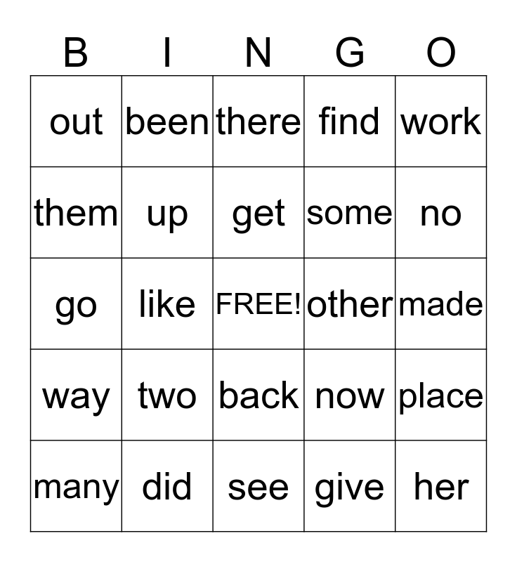 This bingo card has a free space and 84 words: which, they, there, was, were, how, when, from, say, what, your, with, up, other, about, out, many, them, then, these, so, some, her, will, like, him, into, time, has, look, two, more, right, go, would, make, see, number, no, way, could, people, my, than, first, water, been, called, who, oil, sit, now, find, long, down, day, did, get, come, made, may, part, over, new, sound, take, only, little, work, know, place, years, live, me, back, give, most, very, after, things, our, just, name and good.