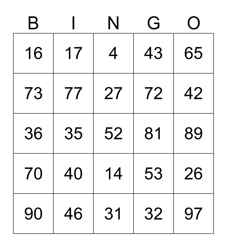 This bingo card has 99 words: 1, 2, 3, 4, 6, 7, 8, 5, 9, 10, 11, 12, 13, 14, 15, 16, 17, 18, 19, 20, 21, 22, 23, 24, 25, 26, 27, 28, 29, 30, 31, 32, 33, 34, 35, 36, 37, 38, 39, 40, 41, 42, 43, 46, 44, 45, 47, 48, 49, 50, 51, 52, 53, 54, 55, 56, 57, 58, 59, 69, 60, 61, 62, 63, 64, 65, 66, 67, 68, 70, 71, 72, 73, 74, 75, 76, 77, 78, 79, 80, 81, 82, 83, 84, 85, 86, 87, 88, 89, 90, 99, 98, 97, 96, 95, 94, 93, 92 and 91.
