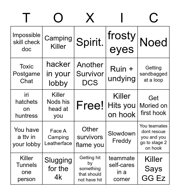 Toxic survivor DBD Bingo | Ultimate DBD Bingo | DBD Survivor Bingo | Ultimate DBD Bingo | Survivor bingo