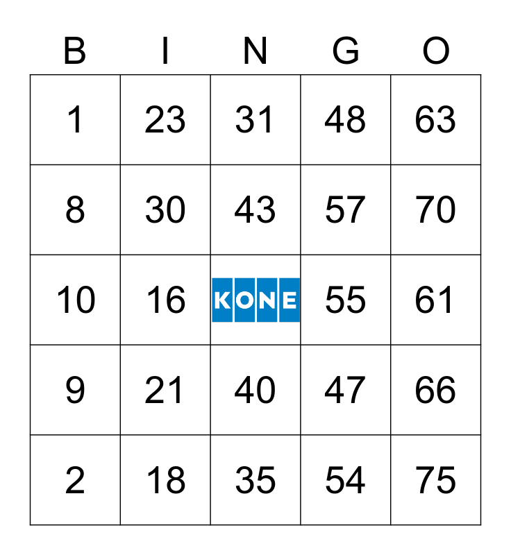 This bingo card has a free space and 24 words: 2, 21, 43, 54, 63, 1, 23, 31, 55, 61, 10, 30, 47, 66, 8, 18, 35, 48, 70, 9, 16, 40, 57 and 75.