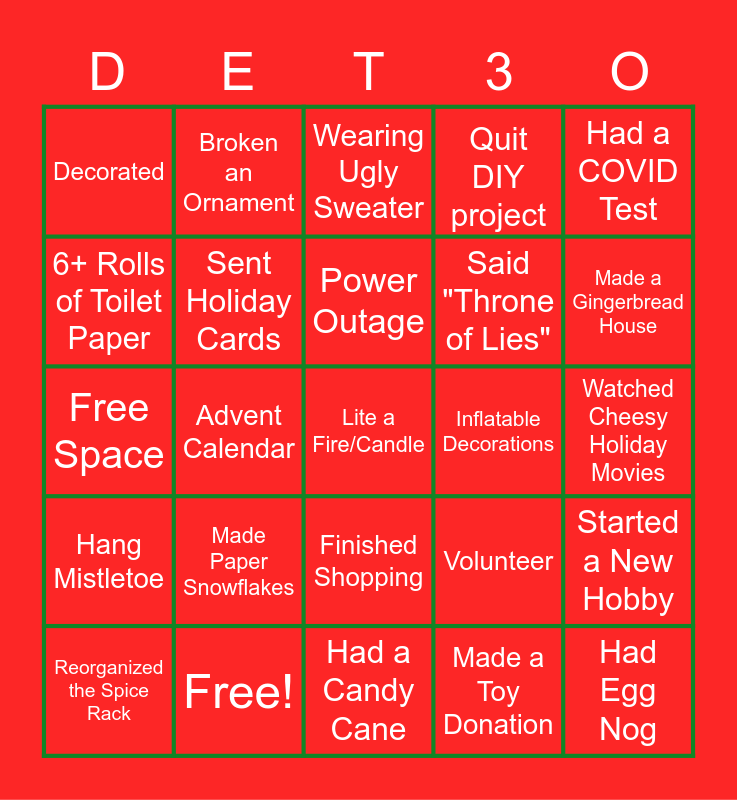 DET 3 HOLIDAY PARTY | DET 3 HOLIDAY | 2020 Pandemic Recap Bingo | RonaBingo | COVID BINGO