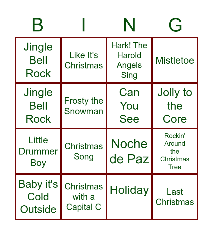 ⚠ This card has duplicate items: Jingle Bell Rock (2)