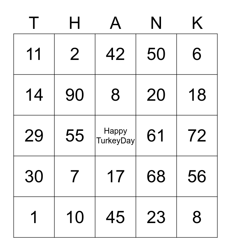 This bingo card has a free space and 24 words: 7, 10, 8, 1, 6, 11, 14, 2, 61, 17, 20, 29, 68, 56, 90, 23, 72, 42, 18, 55, 8, 30, 50 and 45.