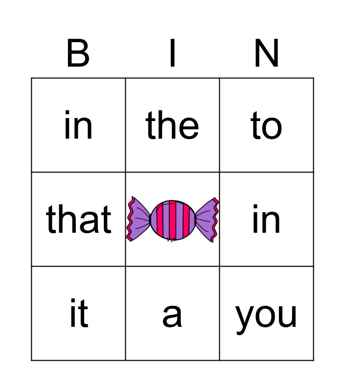 This bingo card has a free space and 11 words: and, a, you, it, the, to, in, of, that, in and I.