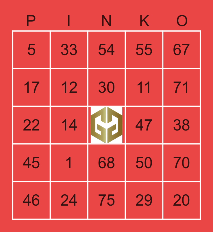 This bingo card has a free space and 24 words: 1, 24, 30, 46, 67, 5, 17, 33, 47, 68, 11, 22, 50, 70, 12, 29, 38, 54, 71, 14, 20, 45, 55 and 75.