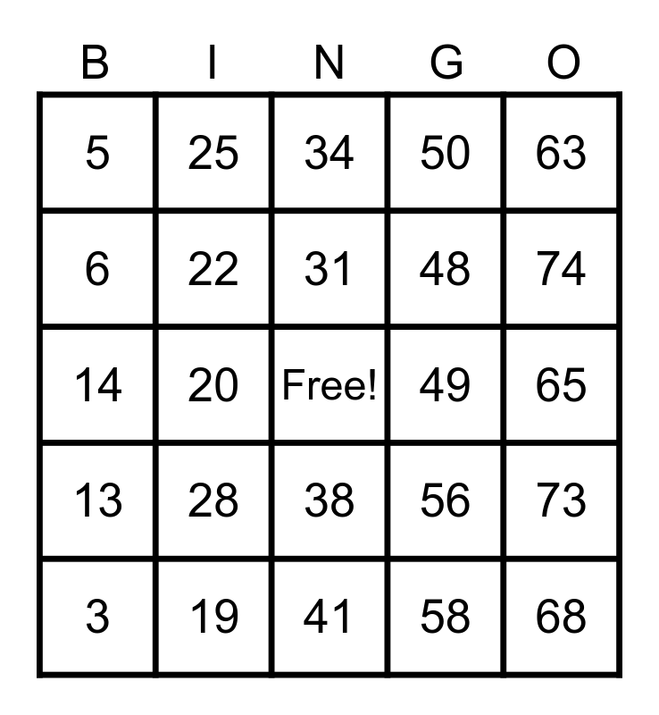 This bingo card has a free space and 74 words: 1, 16, 31, 46, 61, 2, 17, 32, 47, 62, 3, 18, 48, 63, 4, 19, 33, 49, 64, 5, 20, 34, 50, 65, 6, 21, 35, 51, 66, 7, 22, 36, 52, 67, 8, 23, 37, 53, 68, 9, 24, 38, 54, 69, 10, 25, 39, 55, 70, 11, 26, 40, 56, 71, 12, 27, 41, 57, 72, 13, 28, 42, 58, 73, 14, 29, 43, 59, 74, 15, 30, 44, 60 and 75.