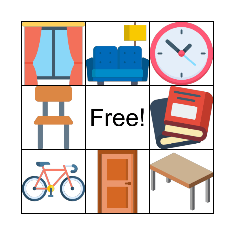This bingo card has 13 images and a free space.