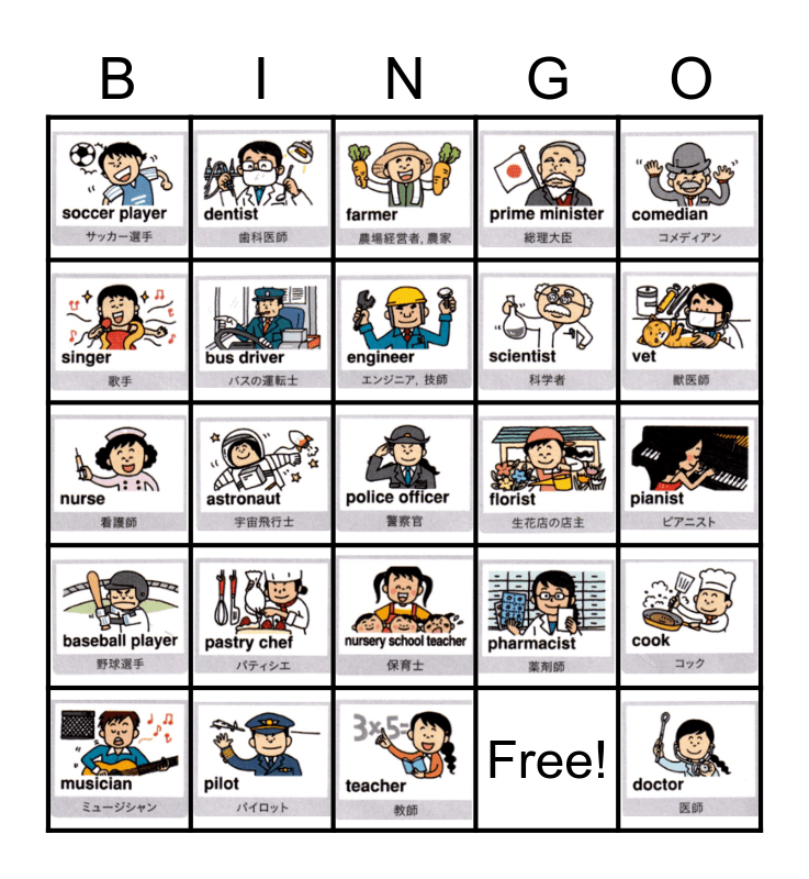 Jobs: What do you want to be? Bingo Card