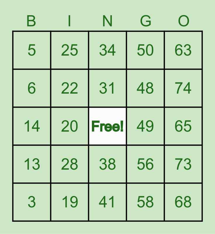 This bingo card has a free space and 74 words: 1, 16, 31, 46, 61, 2, 17, 32, 47, 62, 3, 18, 48, 63, 4, 19, 33, 49, 64, 5, 20, 34, 50, 65, 6, 21, 35, 51, 66, 7, 22, 36, 52, 67, 8, 23, 37, 53, 68, 9, 24, 38, 54, 69, 10, 25, 39, 55, 70, 11, 26, 40, 56, 71, 12, 27, 41, 57, 72, 13, 28, 42, 58, 73, 14, 29, 43, 59, 74, 15, 30, 44, 60 and 75.