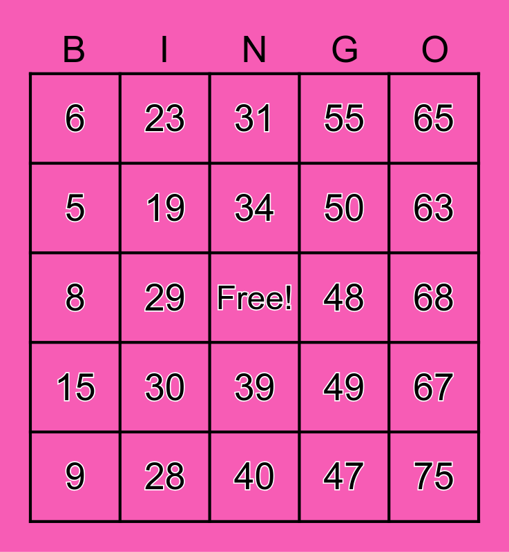This bingo card has a free space and 75 words: 1, 16, 31, 46, 61, 2, 17, 32, 47, 62, 3, 18, 48, 63, 4, 19, 33, 49, 64, 5, 20, 34, 50, 65, 6, 21, 35, 51, 66, 7, 22, 36, 52, 67, 8, 23, 37, 53, 68, 9, 24, 38, 54, 69, 10, 25, 39, 55, 70, 11, 26, 40, 56, 71, 12, 27, 41, 57, 72, 13, 28, 42, 58, 73, 14, 29, 43, 59, 74, 15, 30, 44, 60, 75 and 45.