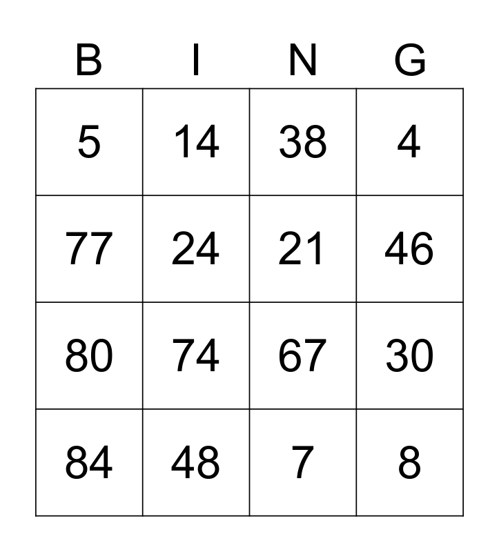This bingo card has 99 words: 1, 16, 31, 46, 61, 2, 17, 32, 18, 47, 62, 3, 19, 48, 63, 4, 5, 33, 49, 64, 65, 20, 34, 50, 51, 6, 21, 35, 36, 66, 7, 22, 23, 52, 67, 8, 9, 37, 53, 68, 69, 24, 38, 54, 55, 10, 25, 39, 40, 70, 11, 26, 27, 56, 71, 12, 13, 41, 57, 72, 73, 28, 42, 58, 59, 14, 29, 43, 44, 74, 15, 30, 77, 60, 75, 76, 80, 45, 78, 79, 84, 81, 82, 83, 88, 85, 86, 87, 92, 89, 90, 91, 96, 93, 94, 95, 97, 98 and 99.