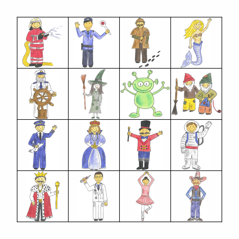 This bingo card has 16 images.