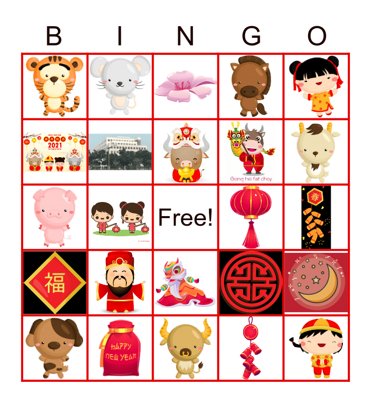 This bingo card has 43 images and a free space.
