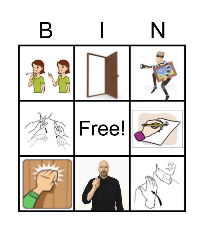 This bingo card has 8 images and a free space.
