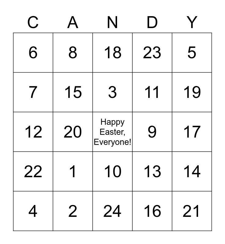 This bingo card has a free space and 24 words: 1, 2, 3, 4, 5, 6, 7, 8, 9, 10, 11, 12, 13, 14, 15, 16, 17, 18, 19, 20, 21, 22, 23 and 24.